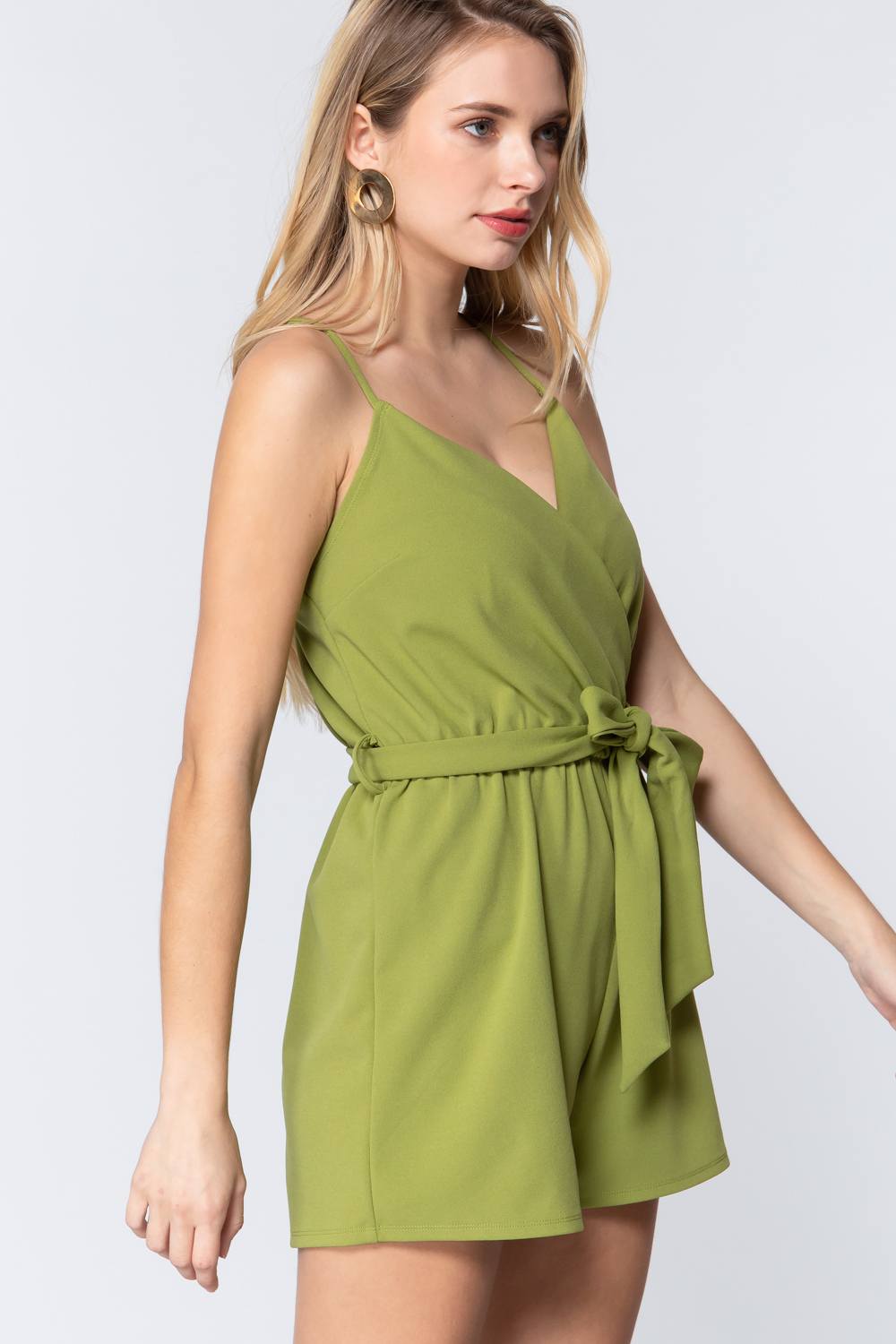 Imported S.M.L V-NECK CAMI BELTED ROMPER 95% Polyester 5% Spandex Guacamole ACT