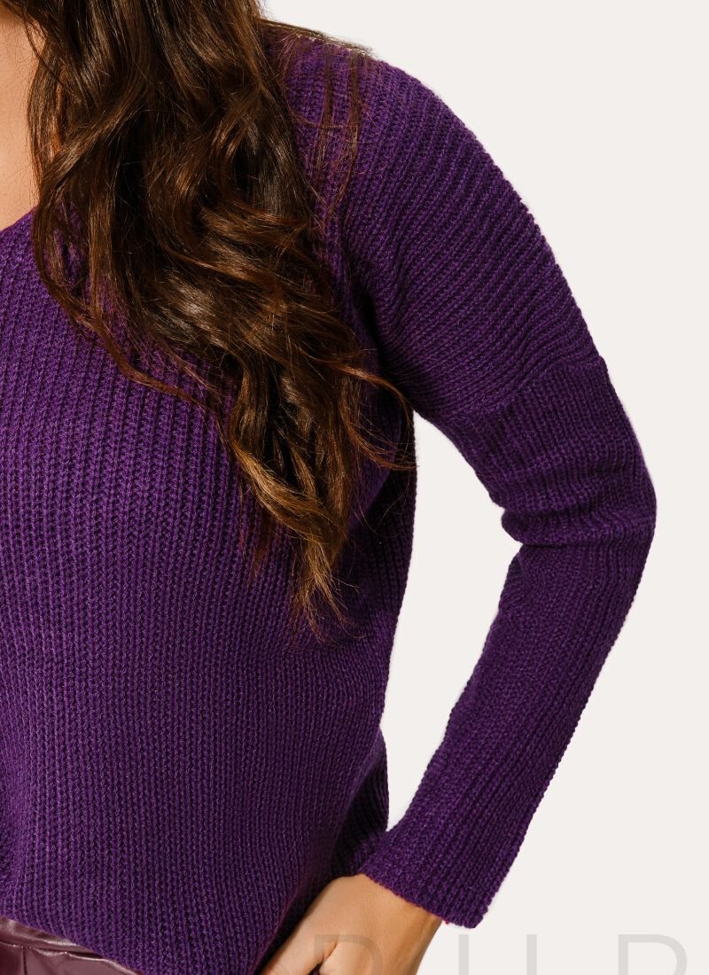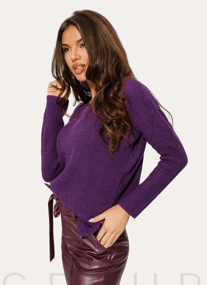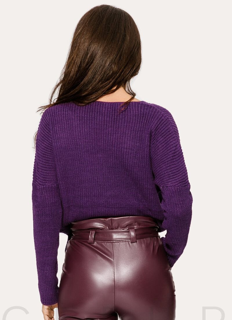 Laconic knitted jumper with a round neck, long sleeves and an elongated back.