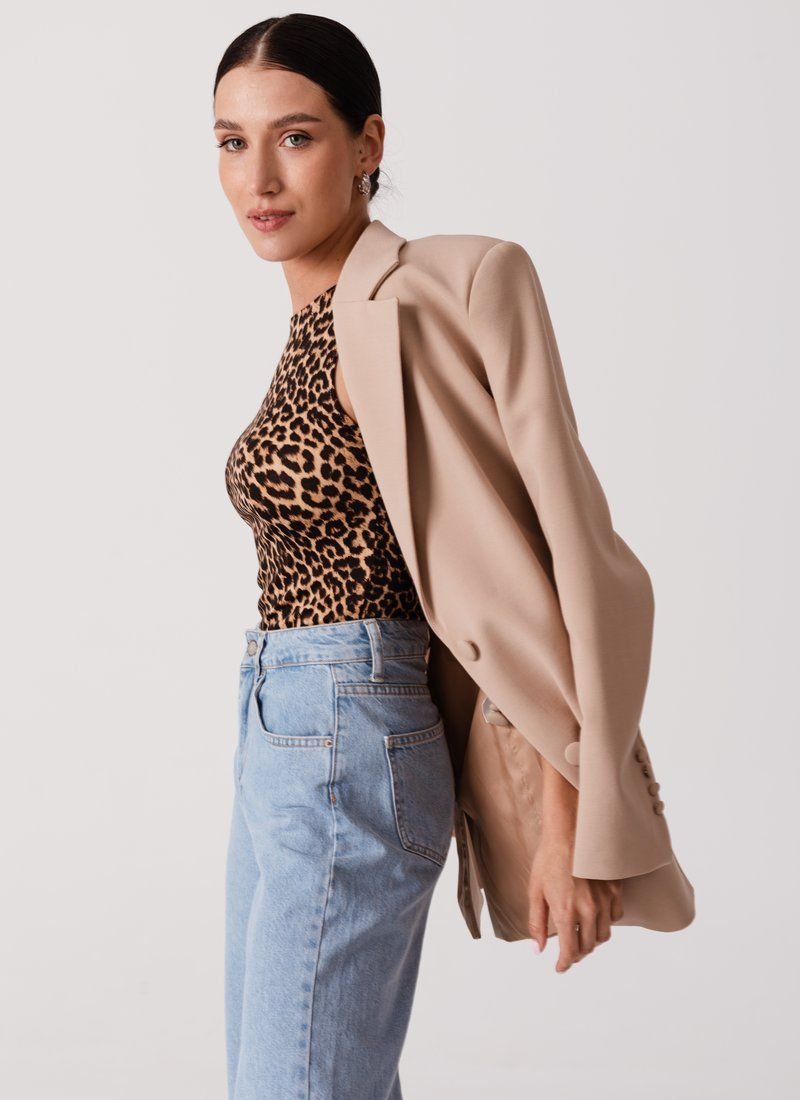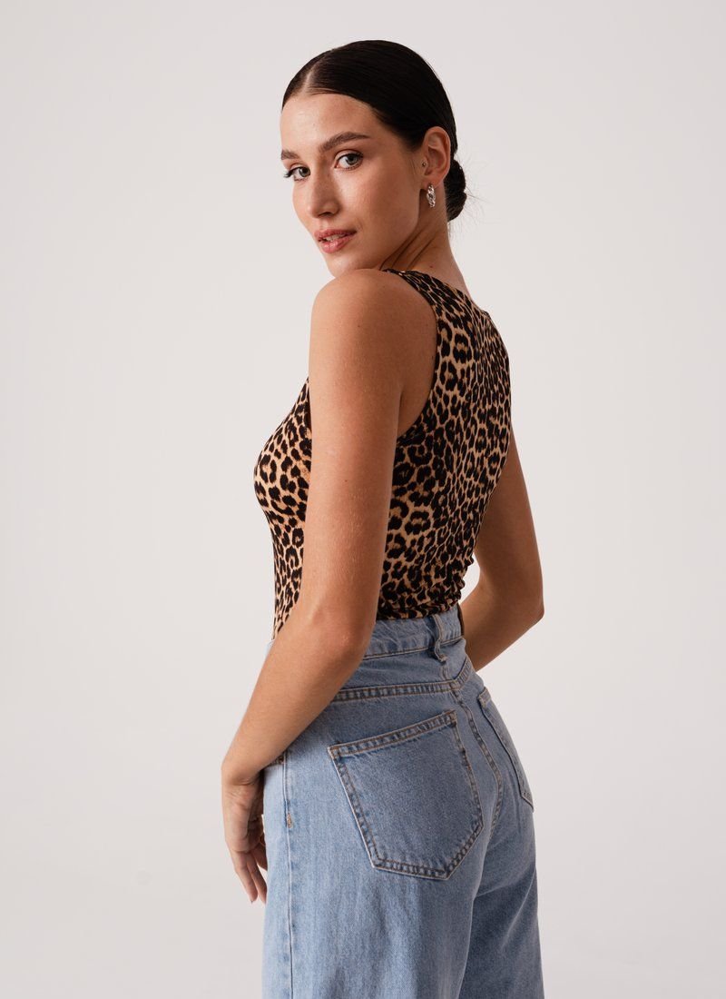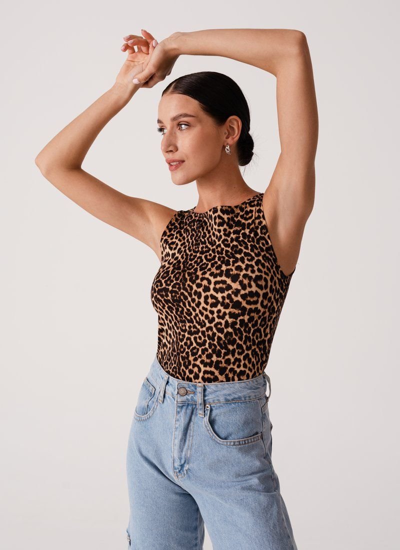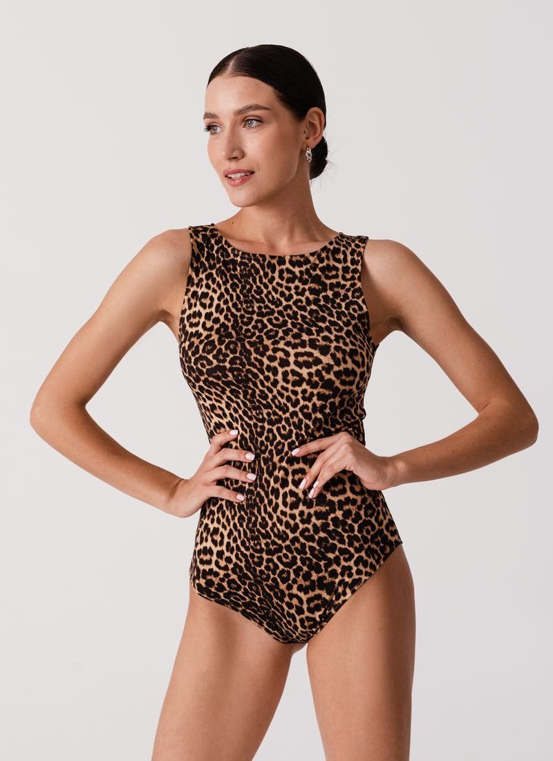 Leopard print and tight fit: this bodysuit combines femininity and provocation. The model is made of elastic material that fits nicely to the body.