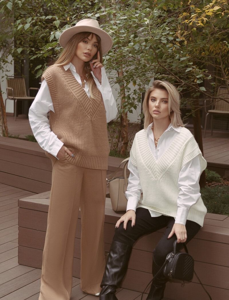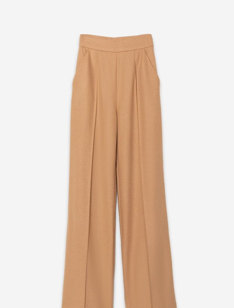 Stylish palazzo trousers from Gepur designers, made of premium wool fabric: a trendy high fit, two slash pockets on the sides and fixed arrows along the entire length of the trousers.