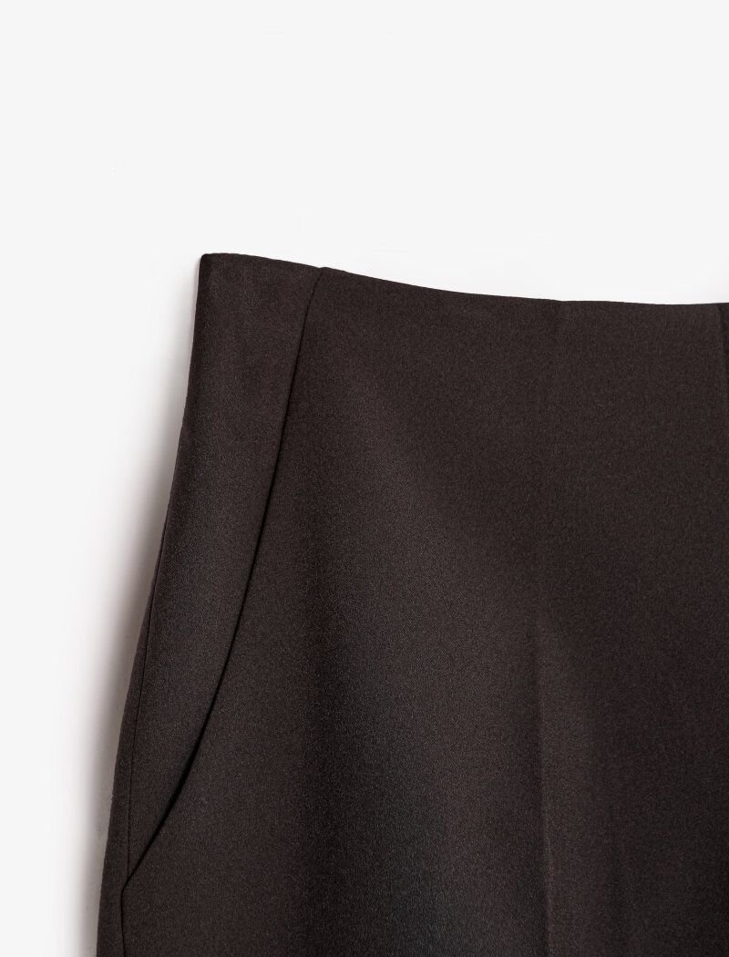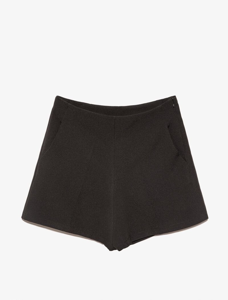 Classic shorts of basic black color with a high fit. Two convenient welt pockets on the sides, neat arrows and a hidden zipper. Perfect for a blouse or shirt in the style of minimalism. Please note that the belt is not included in the kit.