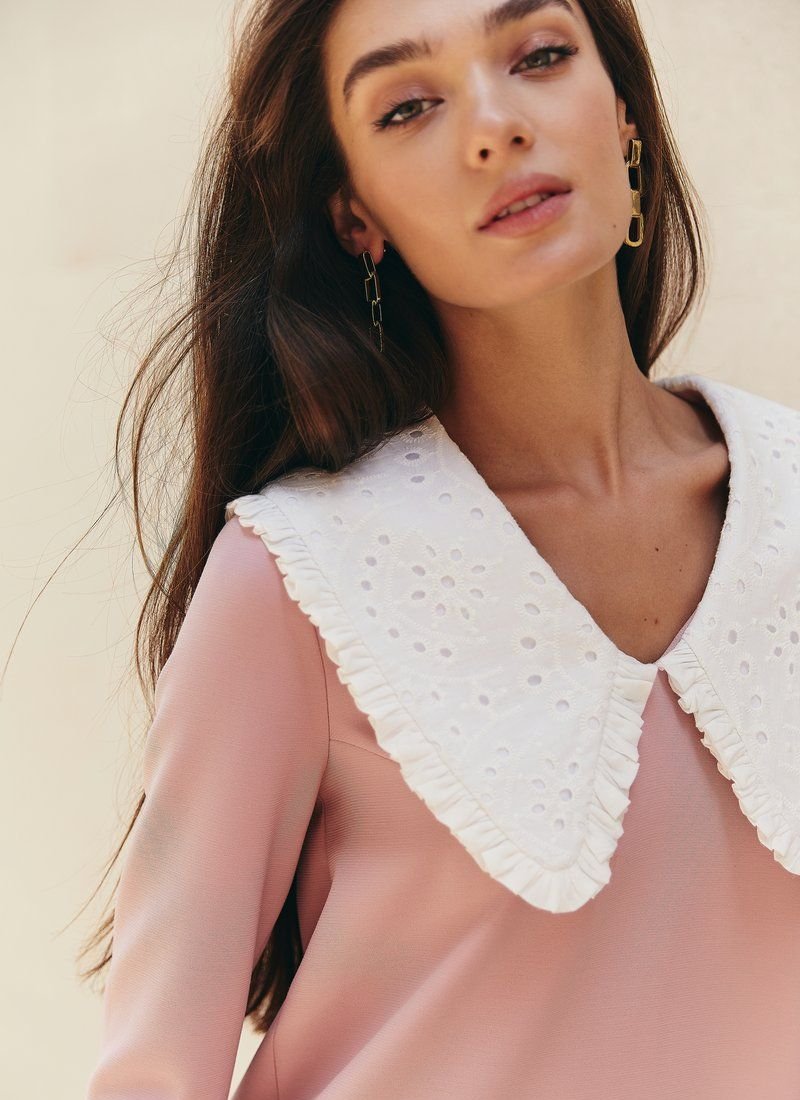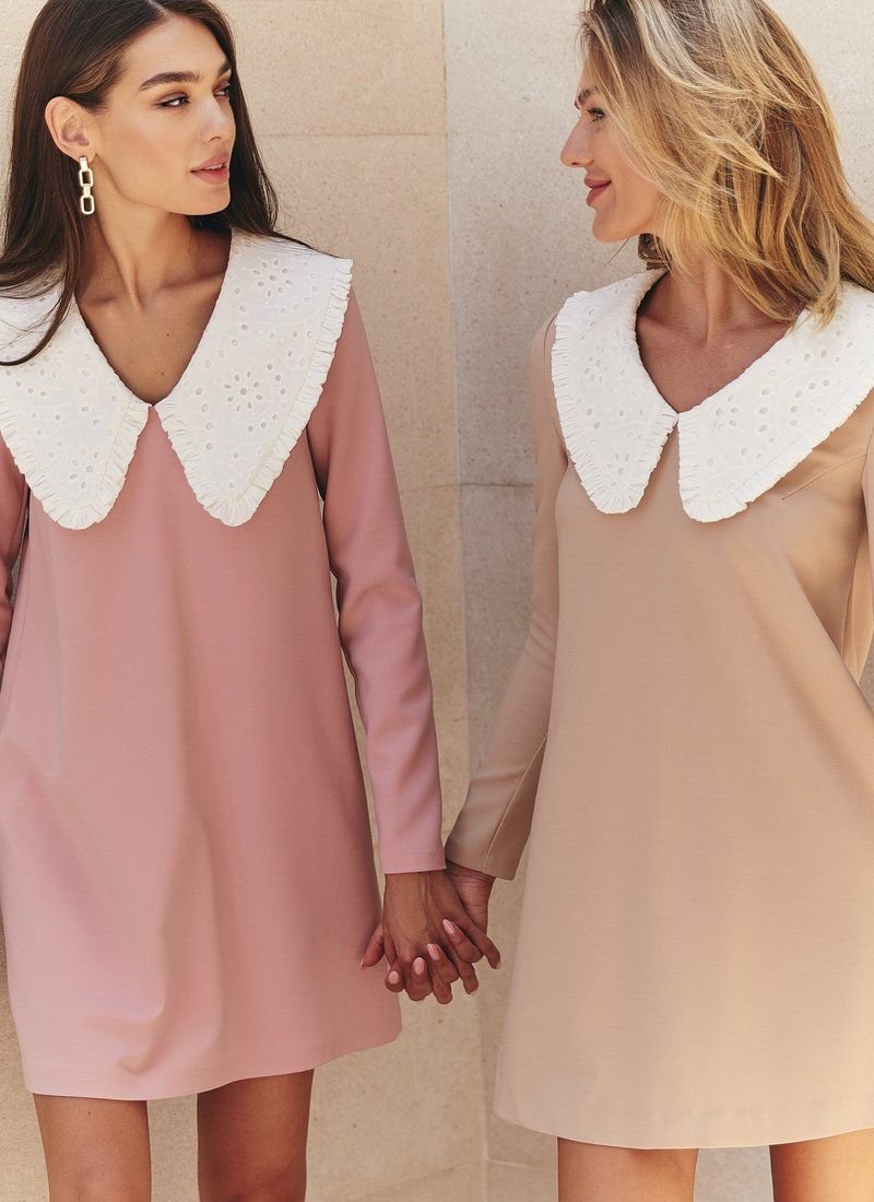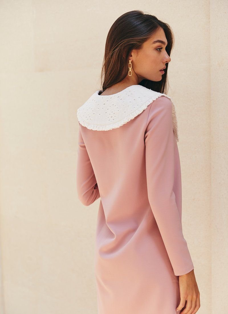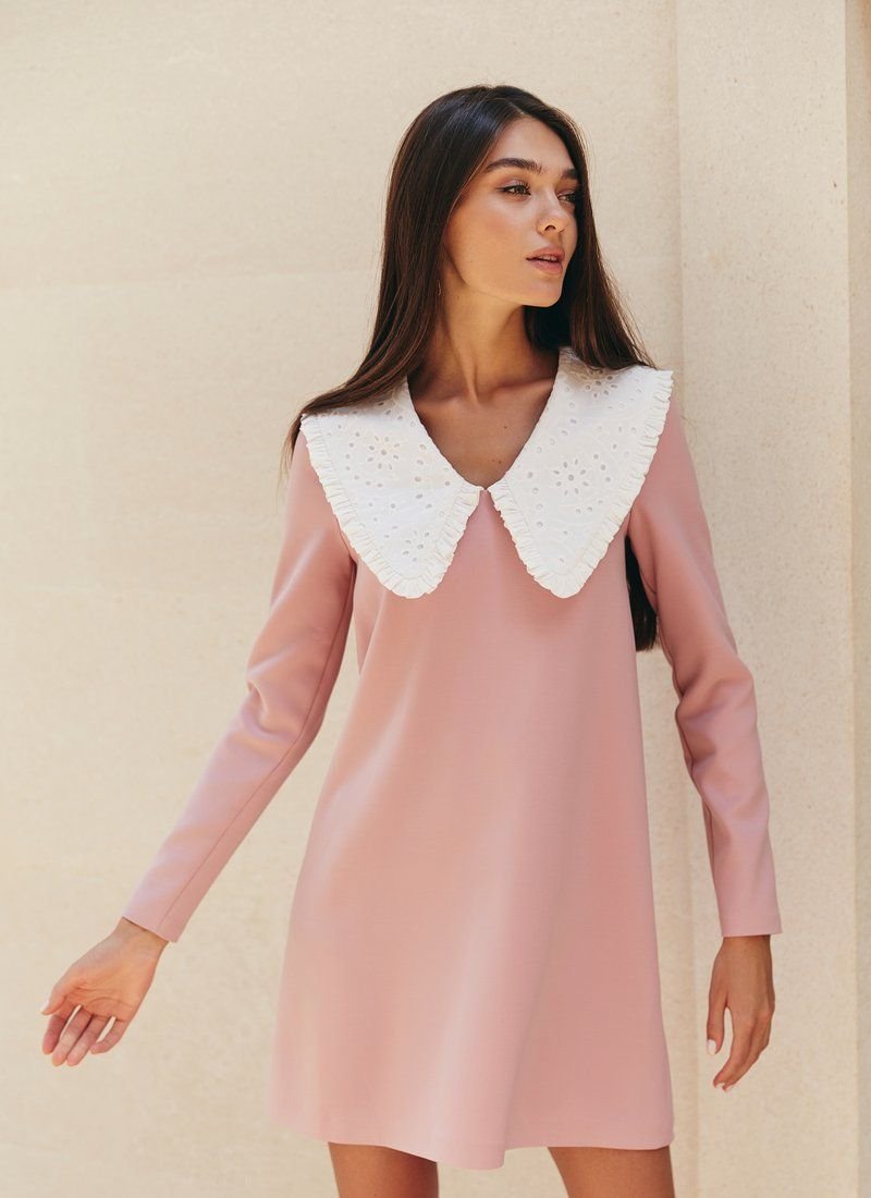 Accent collars do not cease to be relevant, which is why we added such a detail to this dress. The flared cut will allow your movements to be as free as possible, and a delicate pink shade will add romance to the image.